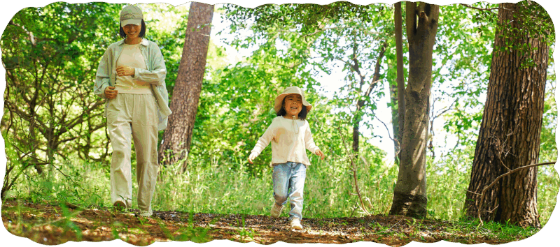 三重県民の森には3つのウォーキングコースがあり、あなたの体力にあわせて歩くことができます。もちろんコース通りではなく好きなように歩いていただいても結構です。どのコースも森林浴を楽しめ、体力つくりだけでなく、家族や友人とゆっくり散歩も楽しめます。展望の良い東屋でことりの声を聞きながら休憩もできますよ。