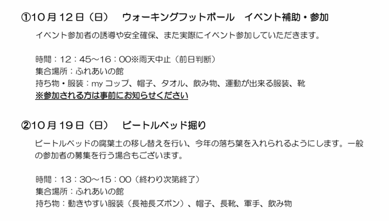 モリメイト10月の予定をアップしました。